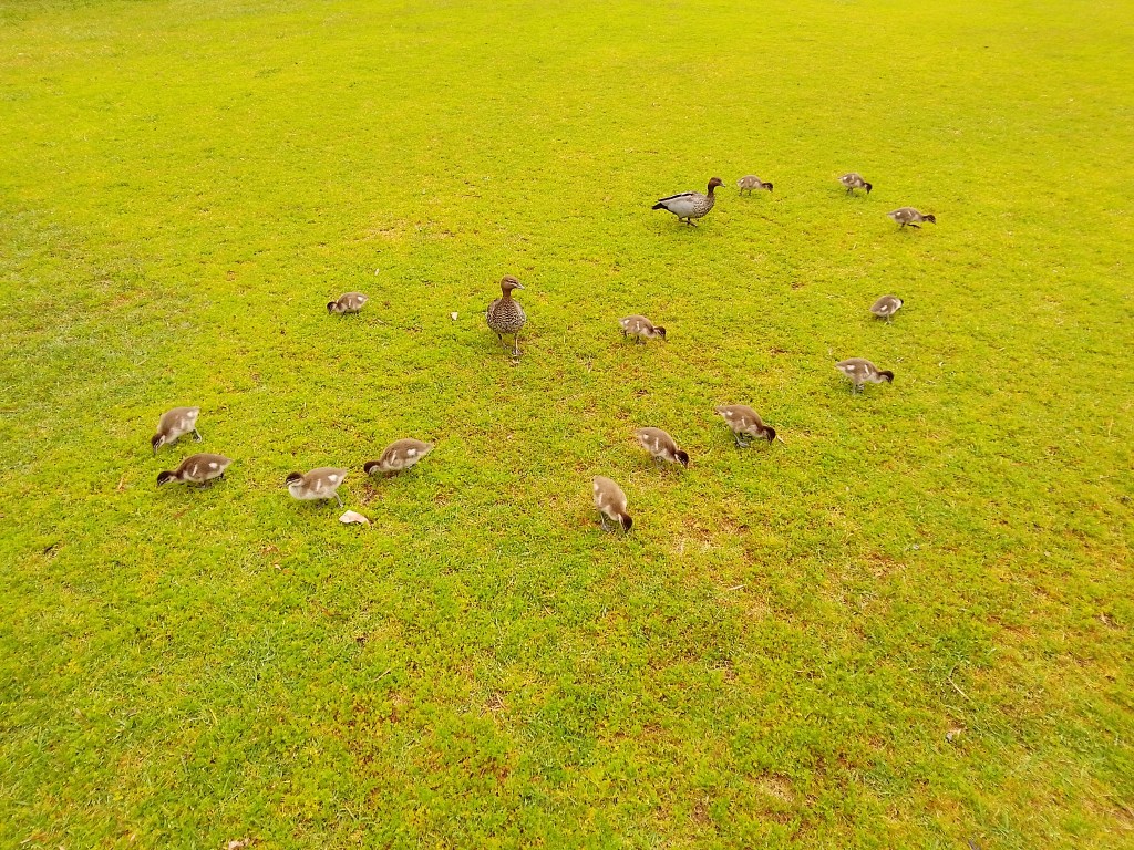 Creatures of the day are some ducks and ducklings at the campsite.