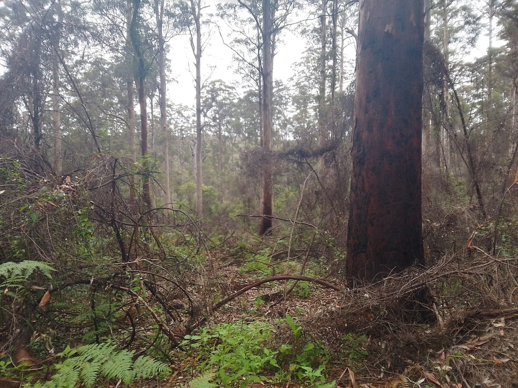 Then a loop around the Valley of the Giants which is where the tourists see the big trees but did have some fun on a windy downhill bit through dripping forest. And then left and inland up countless miles of gravel and sandy road to, eventually, arrive at the hut rather later than planned.