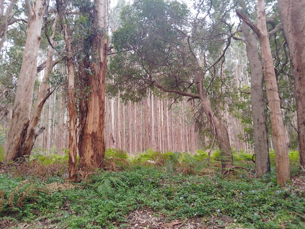 So I headed off through some nice but soggy bush to the beach. Quick glimpse of the Southern Ocean and then headed off through more soggy bush to a loop around a river inlet. Spectacular scenery with really big trees but truly evil to cycle round as the road kept doing really steep ups and downs. So hard that it rather spoiled it for me.